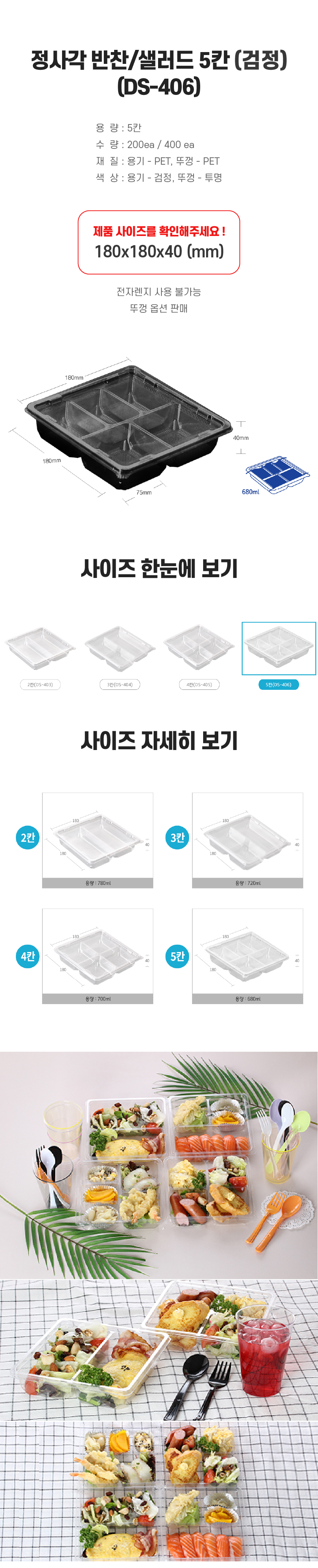 정사각 반찬/샐러드 5칸(DS-406)검정