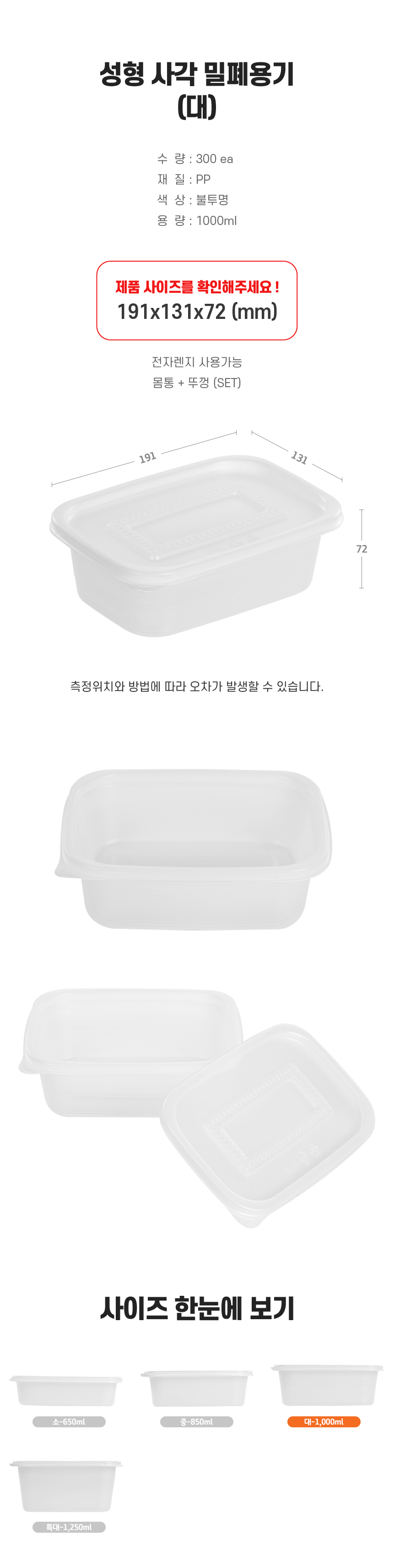 성형사각밀폐 죽용기(대)