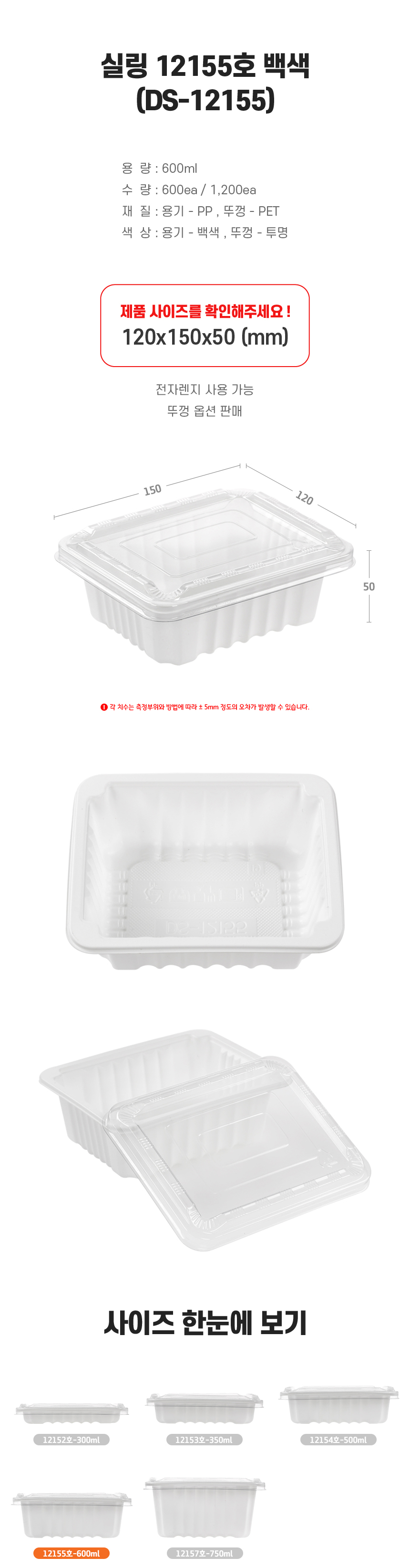 120 x 150 x 50mm /  600ml