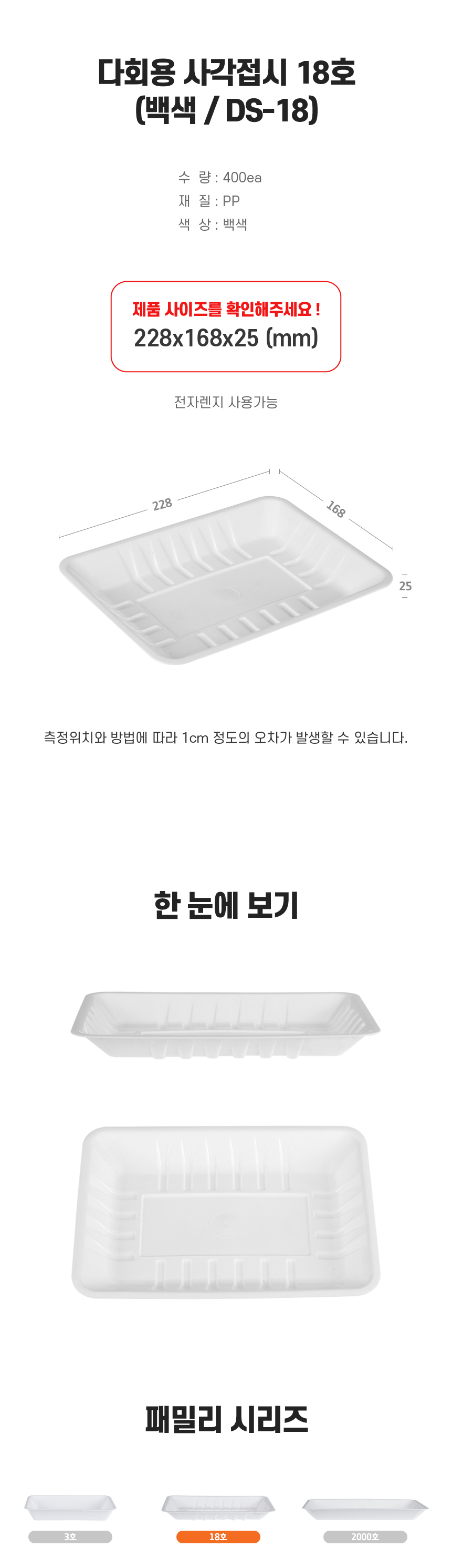 다회용 사각접시 18호(DS-18)백색