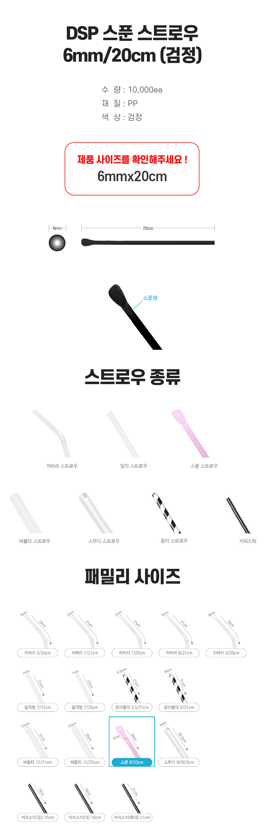 DSP 스푼 스트로우 6MM/20CM (검정)