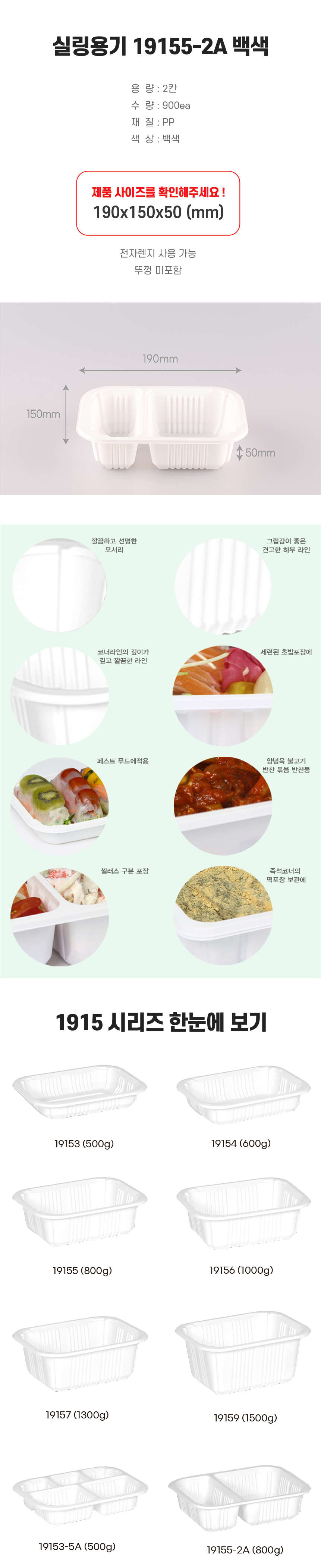 190 x 150 x 50 (mm) / 2칸 / 920 ml